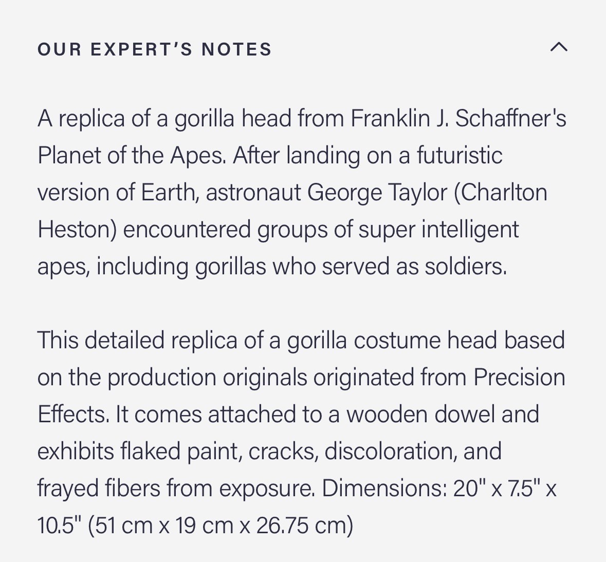 Rob Amantea recently acquired a gorilla bust via Propstore Auctions for a replica piece that was once displayed in a Planet Hollywood. If you have photos of the Planet Hollywood display, please let me know!