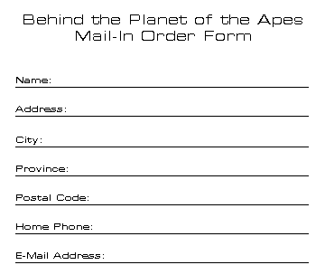 In Canada, mail all formentioned items to: Behind the Planet of the Apes - - - - - - - - - - - - - - - - - - - - - - - - - - - - - - - - - - - - - - - - - - - - CUT ALONG DOTTED LINE AND RETAIN Requests must be postmarked no later than December 1,