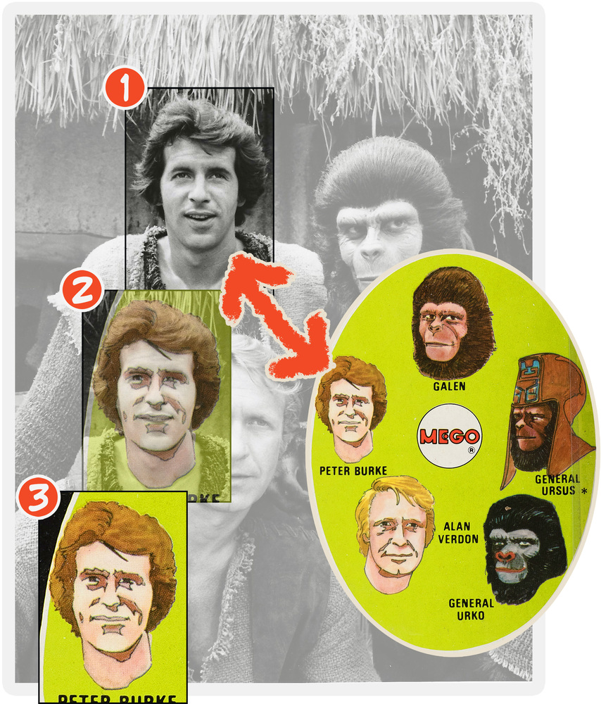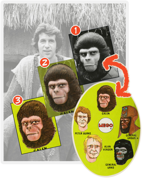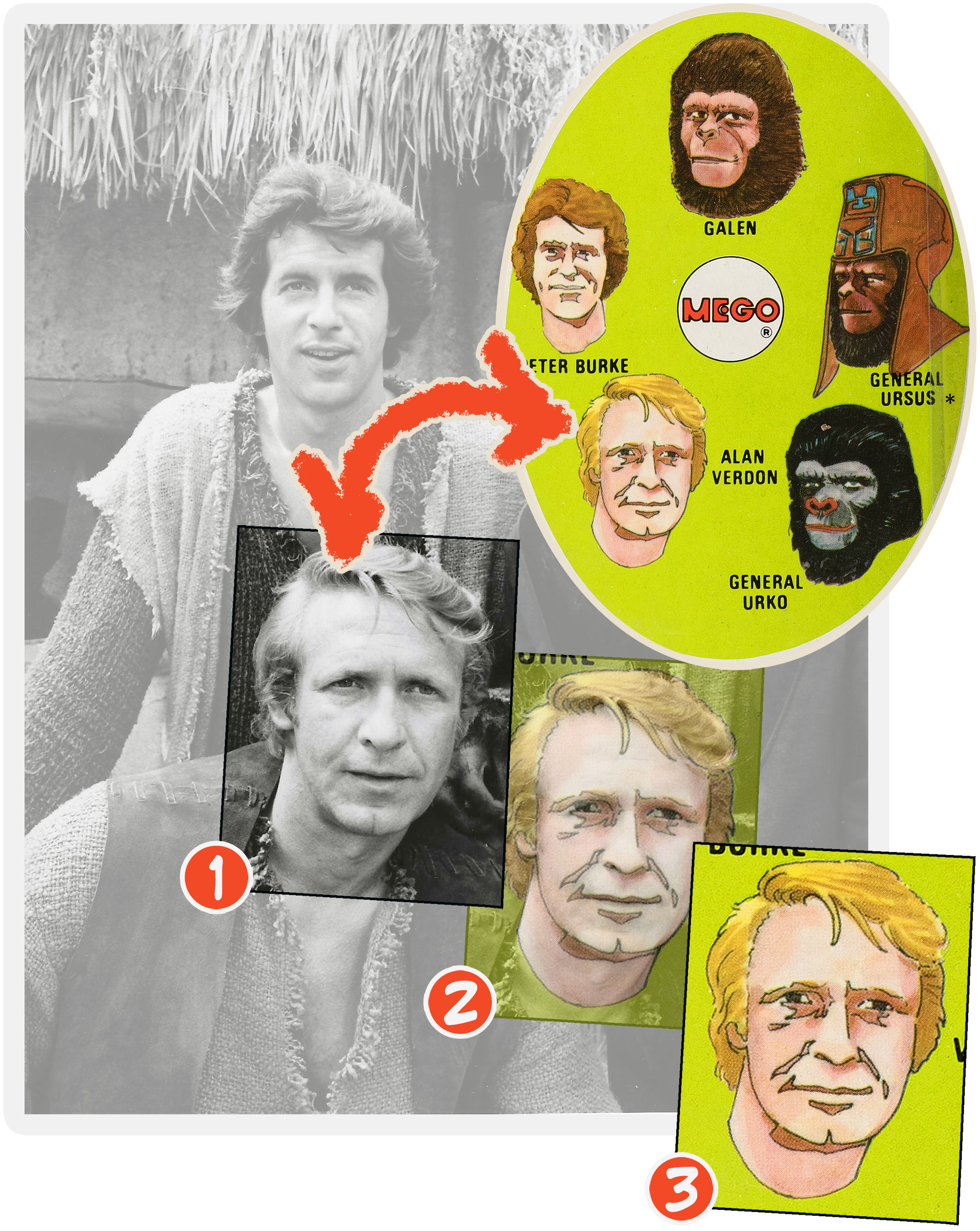 illustrations for Mego's 2nd Series Apes (i.e. Burke, Verdon [sic], Galen,