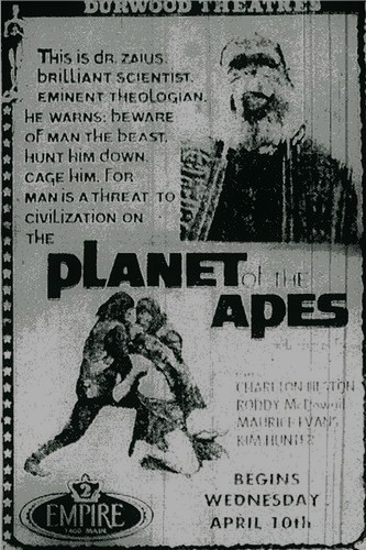 Star trek started with the first pilot that was filmed I thought in 1964-65, then was not picked up until more work from the producers and a change in cast and its official run started in 66. The Apes book ,as you all know was 1963 but was optioned by Jacobs almost before in went into print from a heads up from his future wife Natalie Trundy. Then it was passed around every studio twice and the cheapo King Brothers organization. Finaly it was taken to Fox again and after the little fim with E.G. Robinson it was given a green light. Point being that all of the popular Sci-Fi that came out by the mid to late sixties were probably crossing each others paths and some influence or ideas might of been stolen or co-opted by one or the other. This happens all the time in music esp. at that time with all the competion with musical groups and who will come out with the "newest" sound. John M>