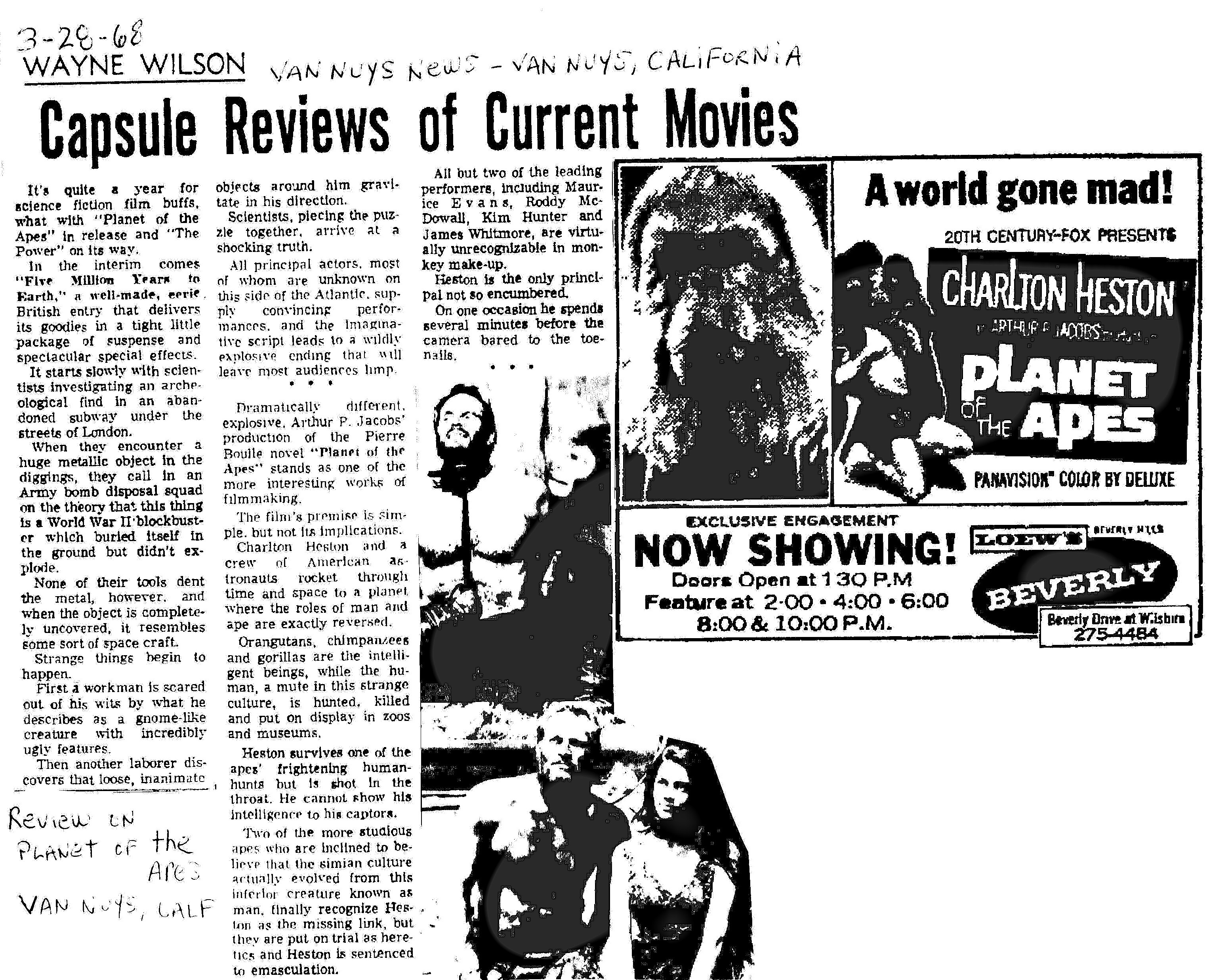 --- In pota@yahoogroups.com, William Burge <billburge48@...> wrote: > > dear group, found three articles on planet in van nuys ,california dated march 26, 1968- march 28,1968-- first article about maurice evans second article on jerry goldsmith and third a review of planet. enjoy from william burge >