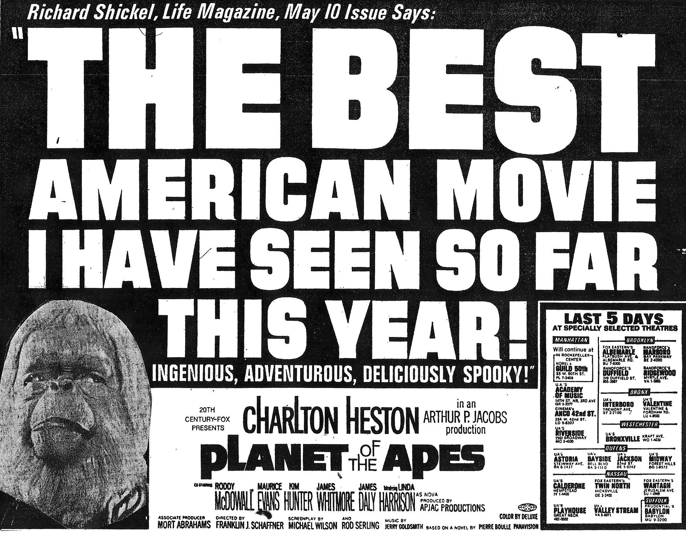 That's what I wish too, for a time machine to go back and take lots of photos. I have a photo of the theatre I first saw PLANET at, but it's from seven years earlier and has a different movie on the marquee. I can easily change that in photoshop, but it ain't real. <.html