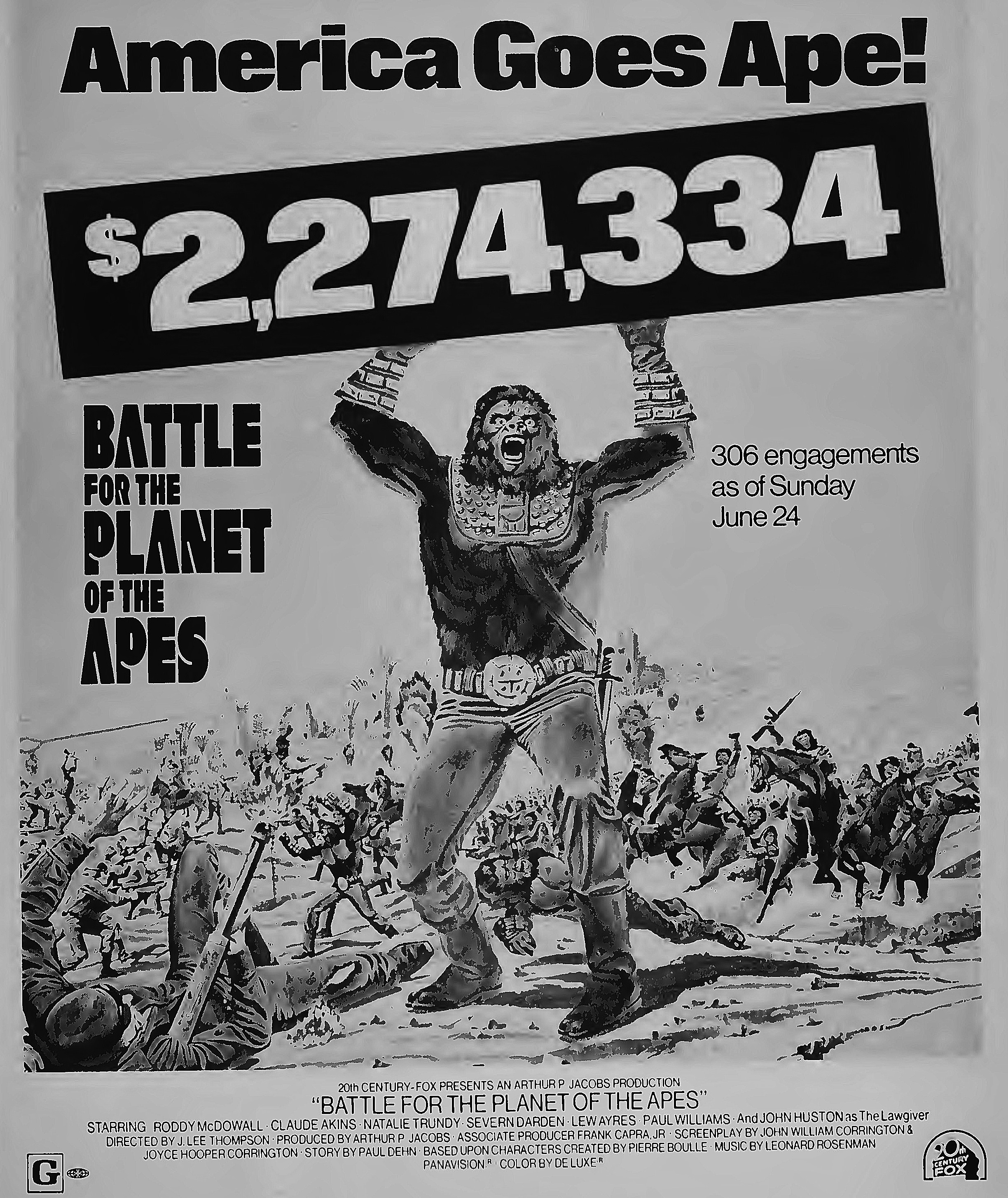 dear group, i found a trade ad for battle from box office magazine july2,1973- battle ape article from aug 13,1973 --then another article from oct 1,1973 on the ape marathon being shown . enjoy from william burge plus an ad from fantastic voyage that got fox to go ahead to produce planet. | <.html
