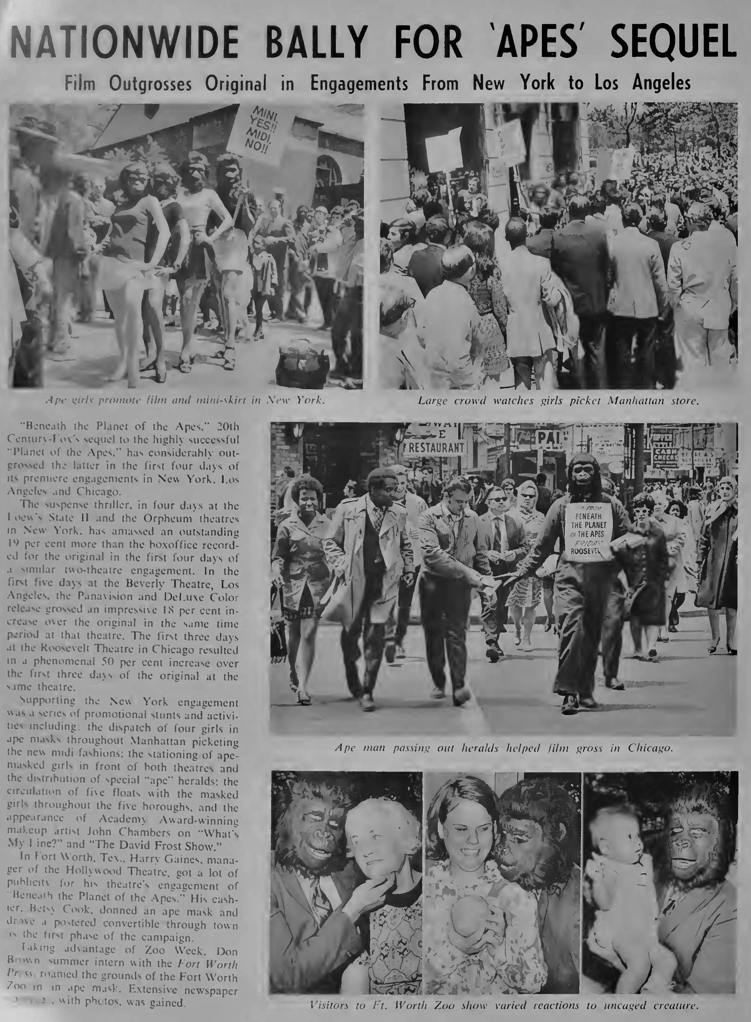 22, 1970-- the write up is about beneath the planet of the apes opening.