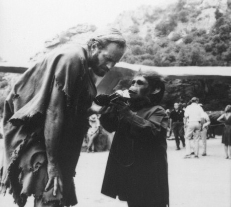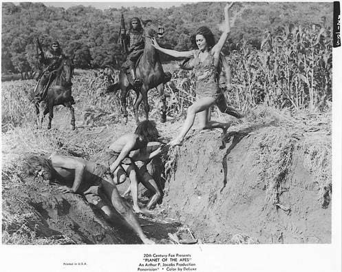 .htmlThese photos are some of the ones taken by Dennis Stock during filming. Has anyone else noticed that the actors in chimp makeup are in Arizona / Utah are not Roddy McDowall or Kim Hunter? Evidently, there were stand-ins in for some scenes, obviously for some of the horseback portions.
