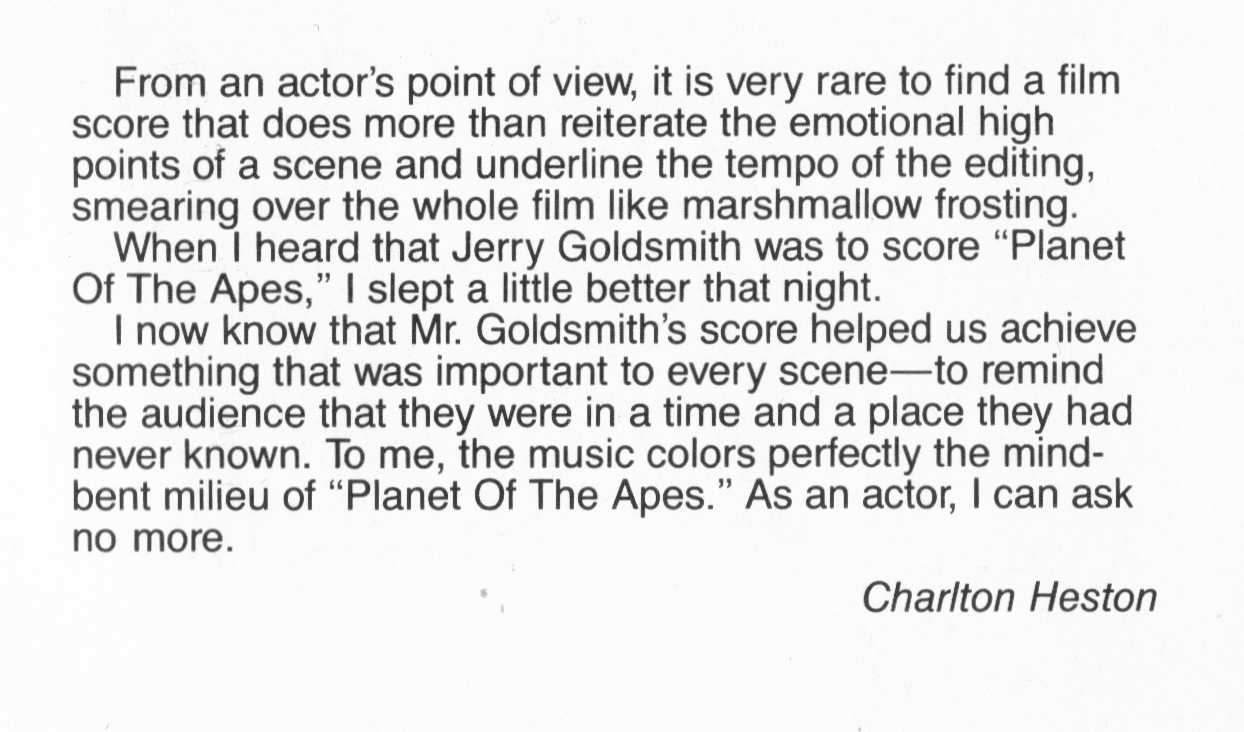 dear group, I wanted to share with you the commentary by charlton heston from the planet lp soundtrack -- his comments are in two parts. its a real neat comment about the music of planet of the apes. enjoy from william <.html <.html