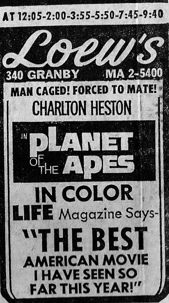 dear group, here are two photos from 1967-- the first is from sept 67 on dr zaius and the second is on heston at the golden globes feb 1967. from william <.html <.html