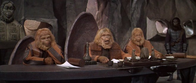 On last night's Mad Men there was another mention of POTA. While there were no clips of the film this time, we did get to see John Slattery do a Dr. Zaius impression.
